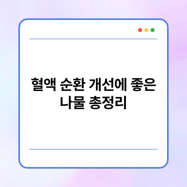 A1: 혈액 순환 개선에 좋은 나물로는 더덕, 취나물, 미나리, 쑥, 시금치, 방풍나물 등이 있습니다. 이 나물들은 영양가가 높고 다양한 요리에 활용 가능해요.