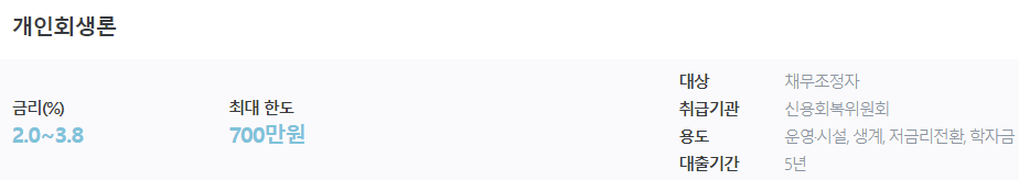 신용회복위원회에서는 법원으로부터 개인회생을 인가받고 성실하게 변제계획을 이행하고 있는 분의 긴급자금 또는 생활안정자금을 지원하기 위한 대출상품을 취급하고 있습니다.