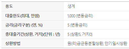 대출기간은 5년으로 결정되며, 대출 초기 상환금 부담을 줄여주는 거치기간은 부여할 수 없고 원리금 균등분할 상환의 방식으로 대출금 상환이 진행되니 참고하시길 바랍니다.
