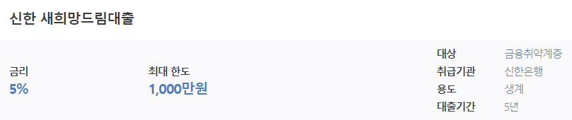 신한은행 새희망드림대출은 금융취약계층을 지원하기 위한 소액 대출 상품입니다.