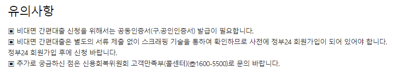 신용회복위원회 비대면 간편대출 유의사항
